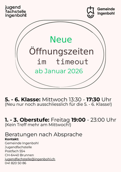 Ab 1. Januar 2026 hat das Timeout angepasste Öffnungszeiten.